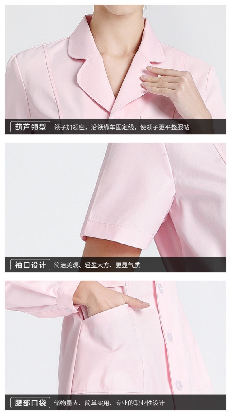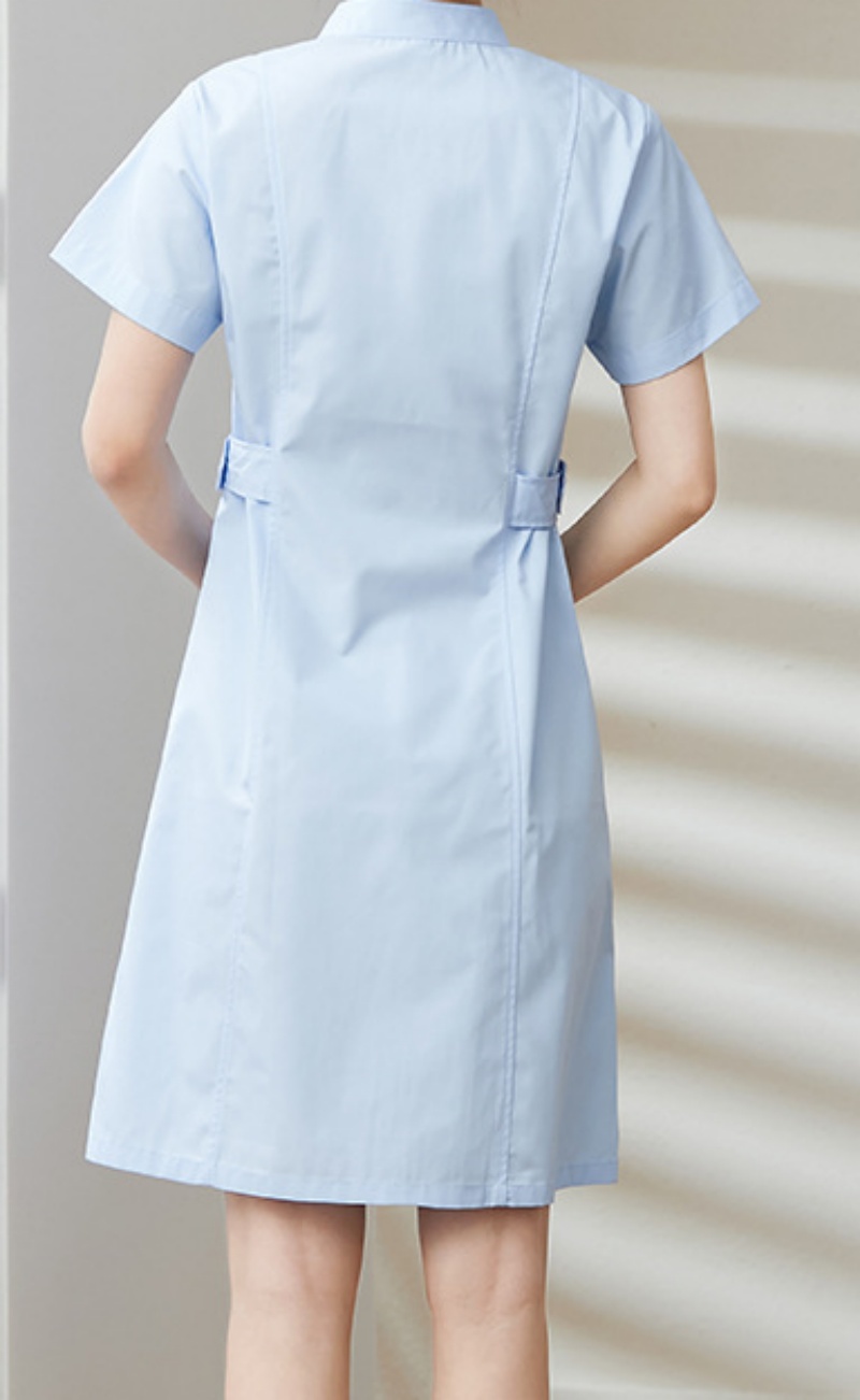 长款护士服 女款 短袖 葫芦领 蓝粉