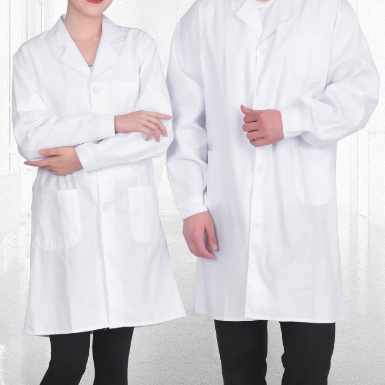 扛油拒水抗静电纽扣长袖白大褂大学生实验服男女同款