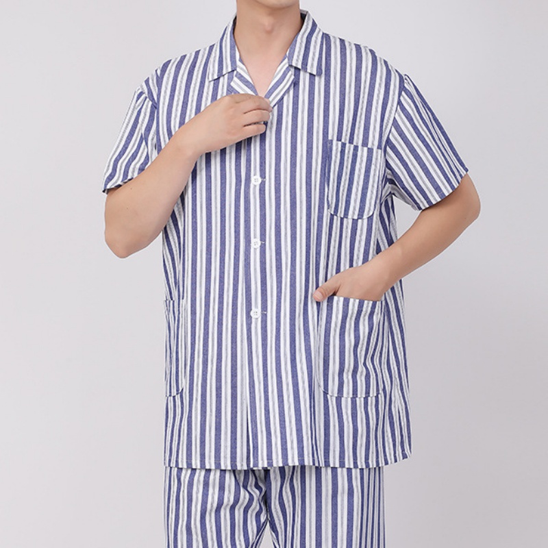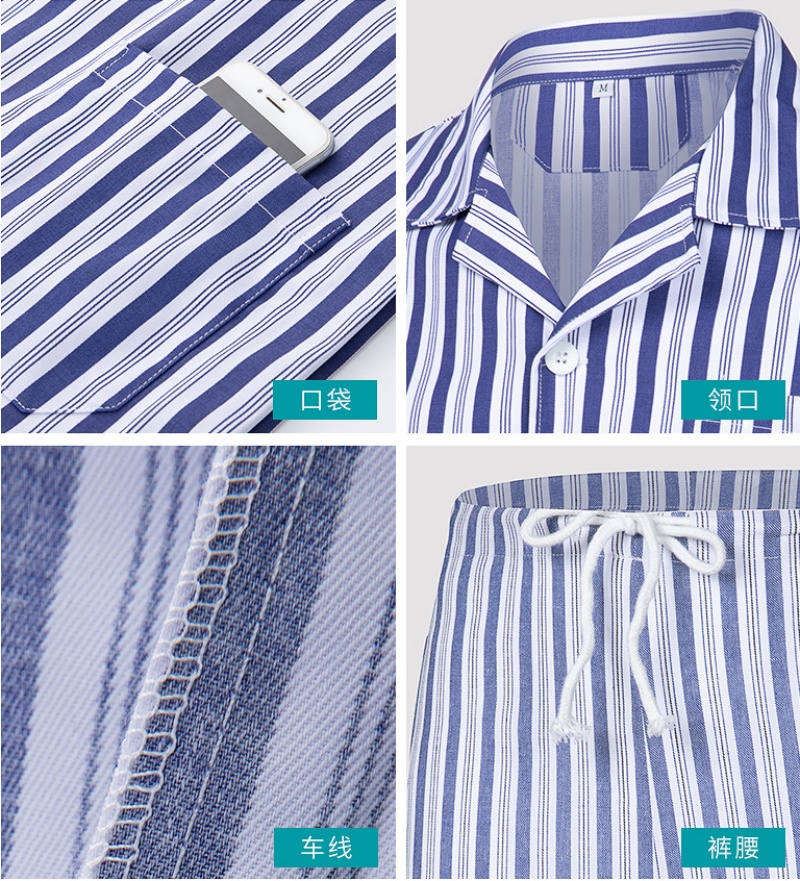 纯棉 病号服 男女款 长短袖 蓝色条纹