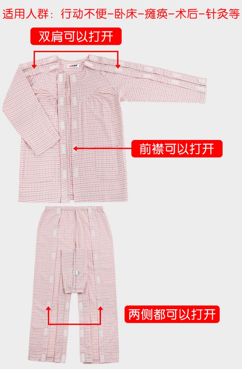 春秋款易穿脱护理服魔术贴款卧床老人睡衣针灸理疗服骨折术后病号