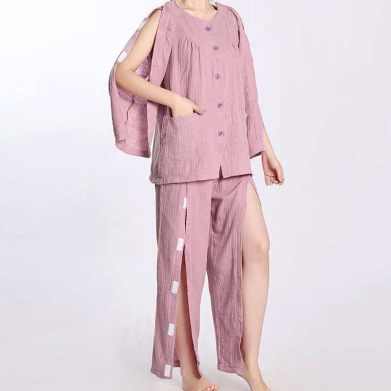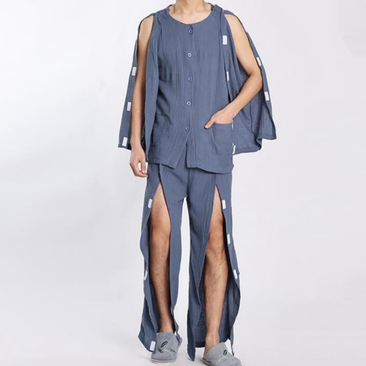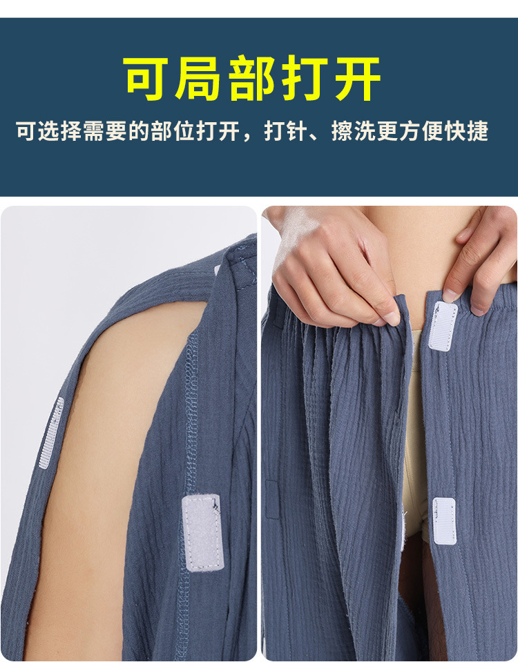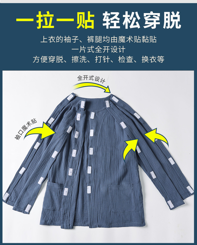 春秋款易穿脱护理服魔术贴款卧床老人睡衣针灸理疗服骨折术后病号
