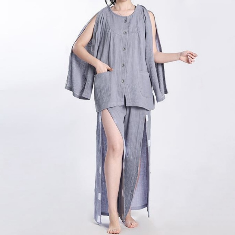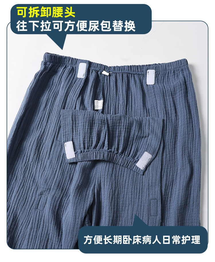 春夏秋款纱线棉纯棉睡衣 骨折卧床瘫痪病人衣服易穿脱护理服