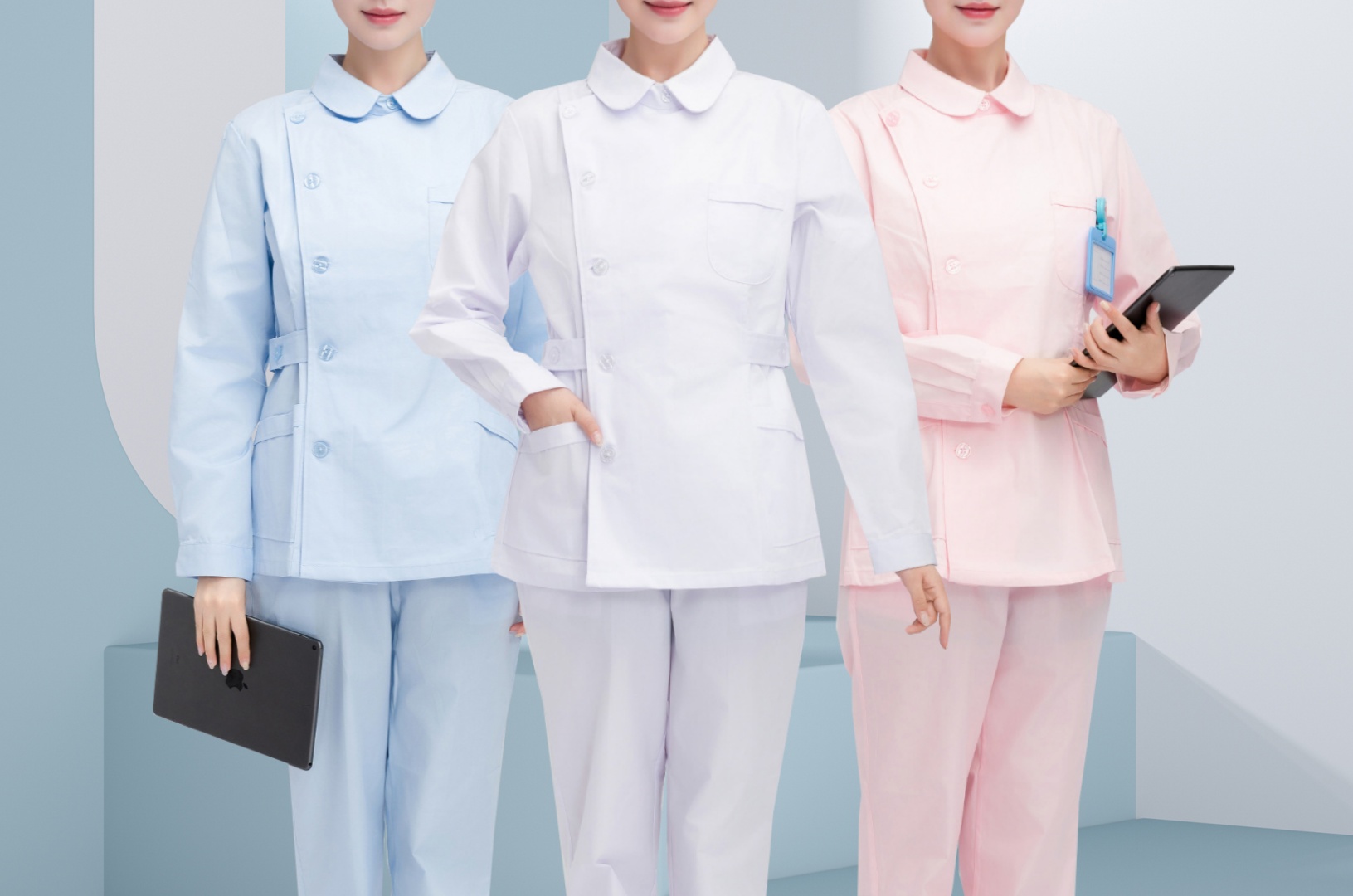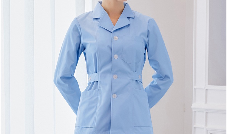 护士分体式套装 女款 蓝白粉 长袖 偏襟娃娃领