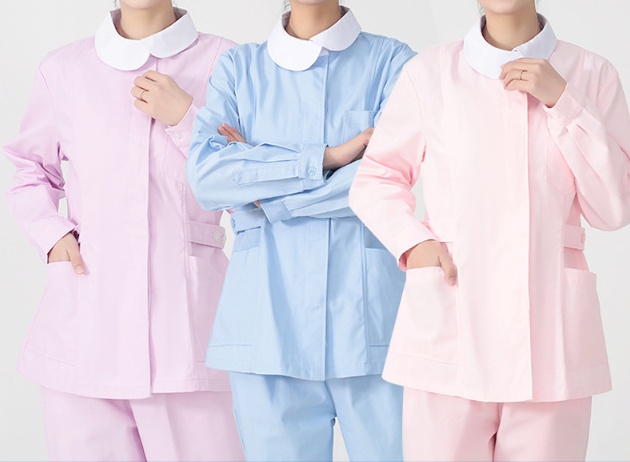 偏襟领娃娃领 护士分体式女款 蓝白粉 长袖