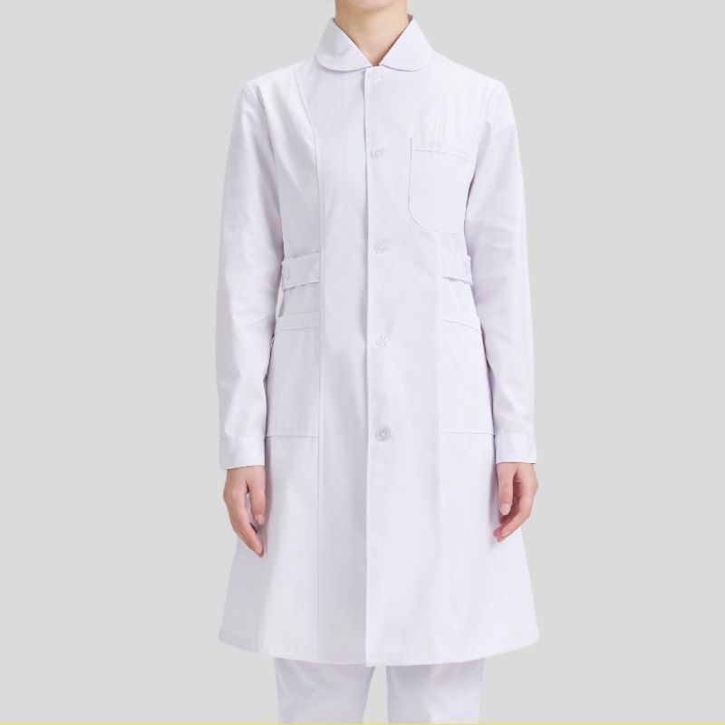 娃娃领护士服长袖长款女白色医院美容服药店工作服白大褂医生