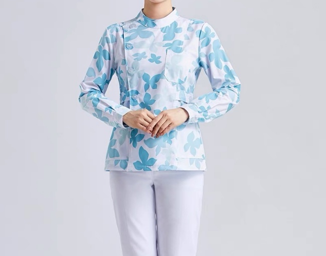 护士服分体套装工作服长袖医生服月嫂美容院医院印花白大褂