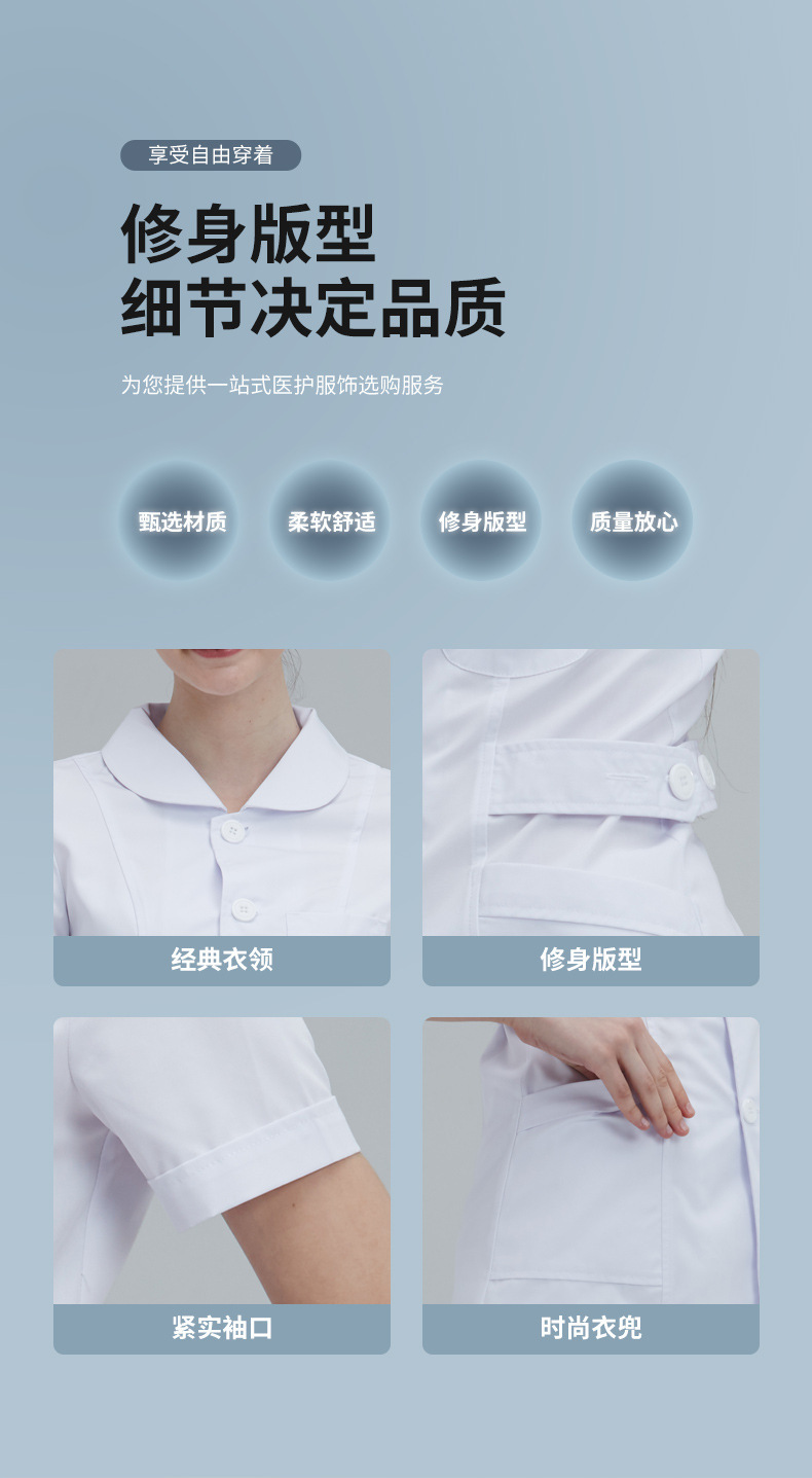 南丁格尔护士服长袖大褂女圆领短袖夏白大褂大码药店工作制服白色