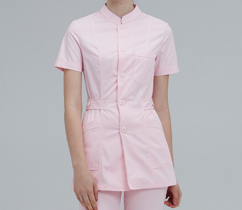 护士服偏襟圆领白色长袖冬装修身牙科美容院牙科蓝色粉色工作服
