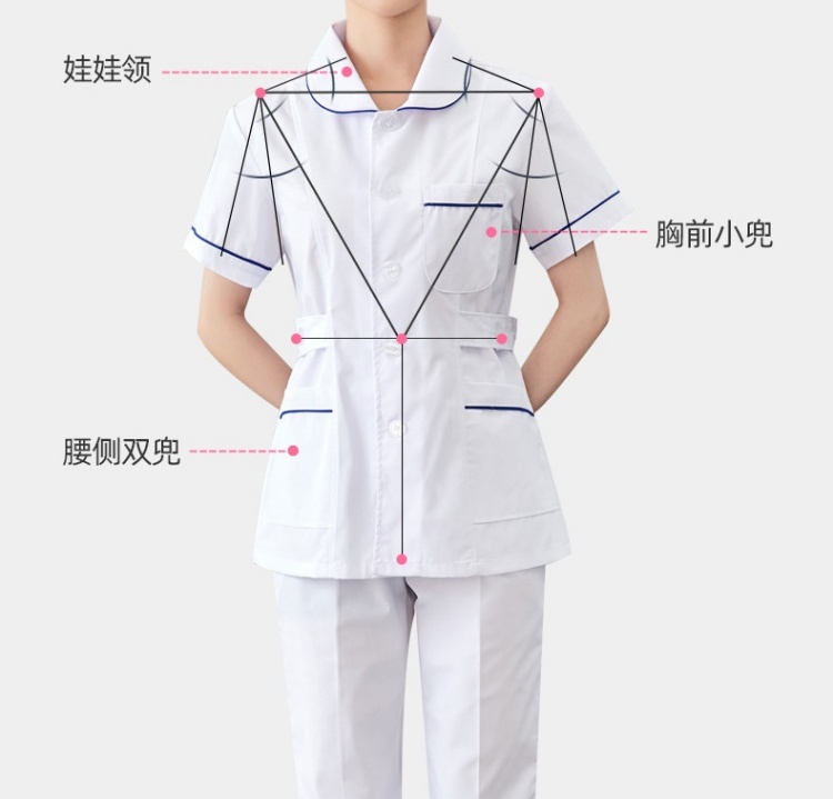 圆领 领子带白边 白蓝粉三色 女款护士分体短袖夏装医生工作服