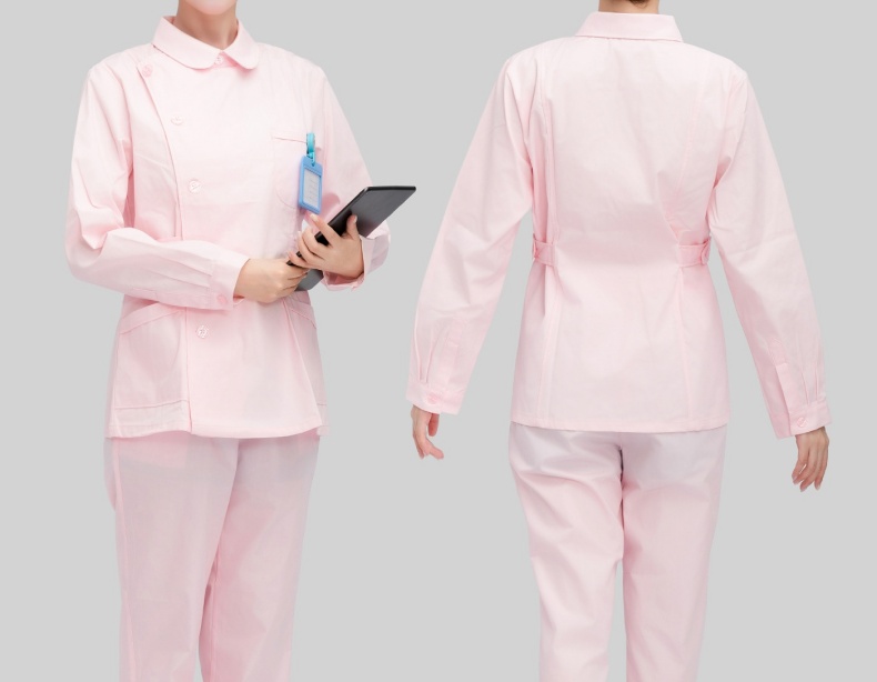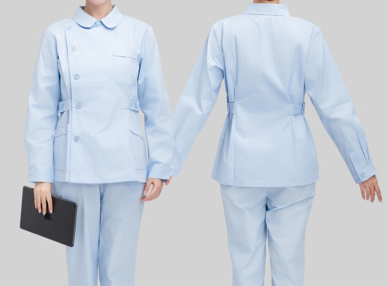 护士分体式套装 女款 蓝白粉 长袖 偏襟娃娃领