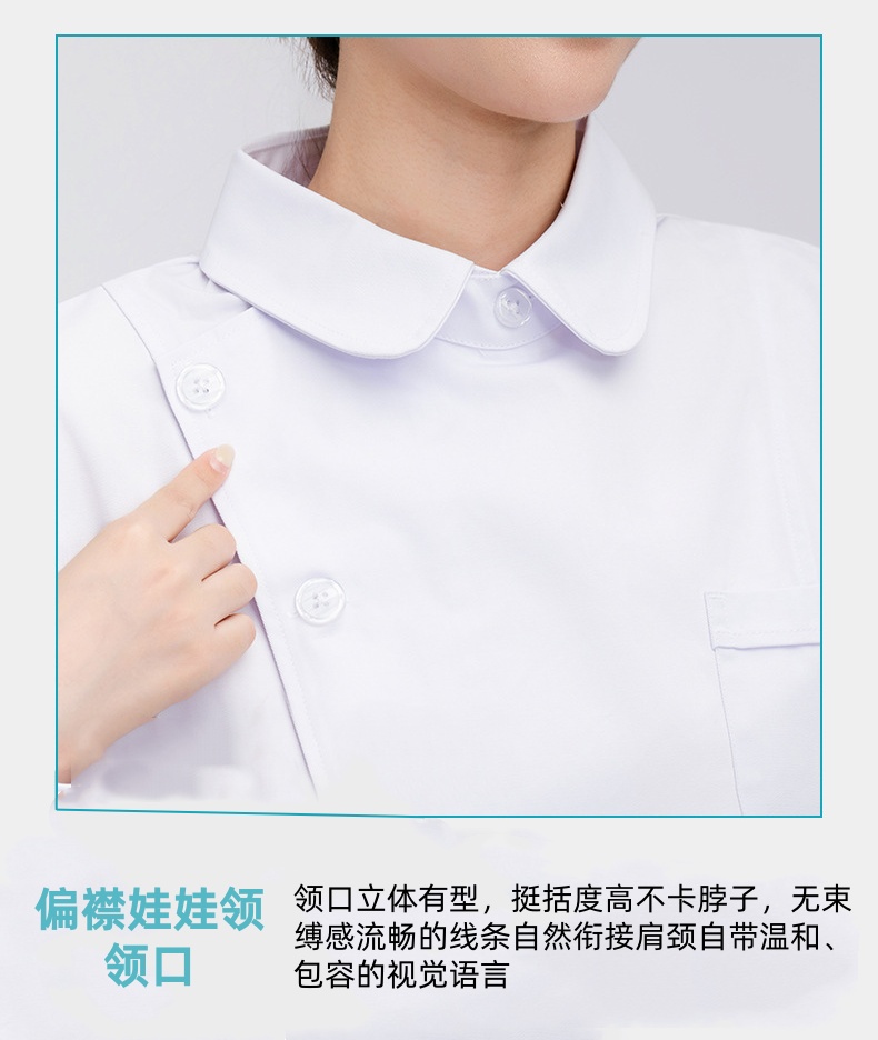 偏襟领娃娃领 护士分体式女款 蓝白粉 长袖