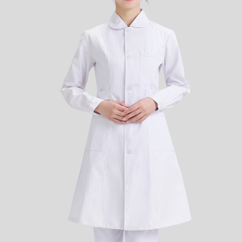 娃娃领护士服长袖长款女白色医院美容服药店工作服白大褂医生