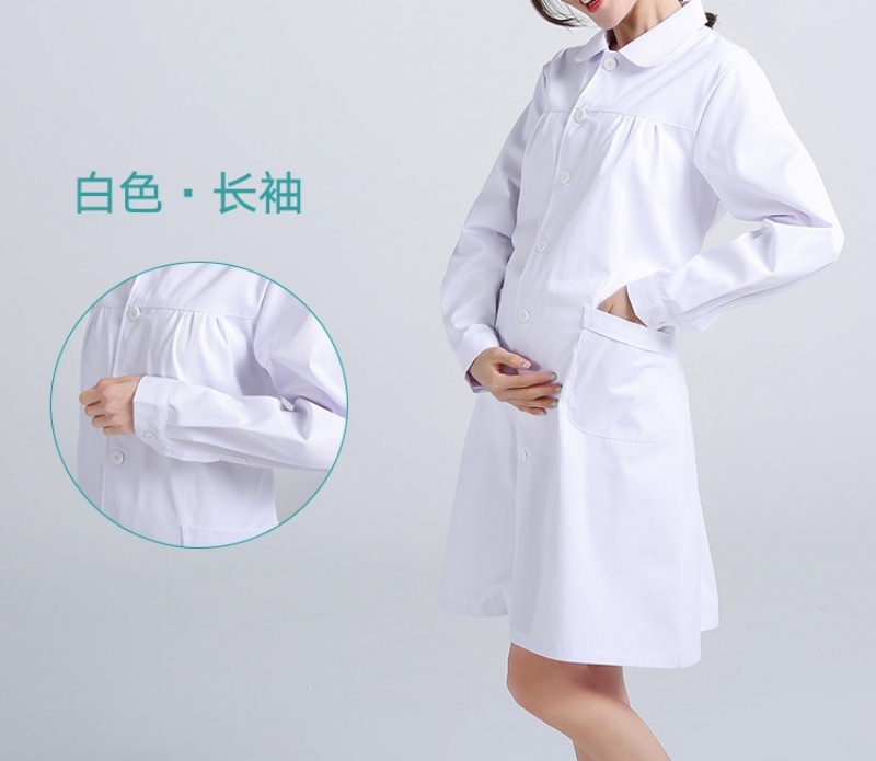 娃娃领护士服长袖长款女白色医院美容服药店工作服白大褂医生