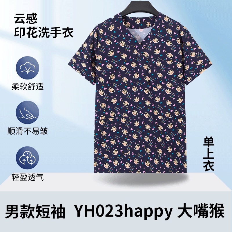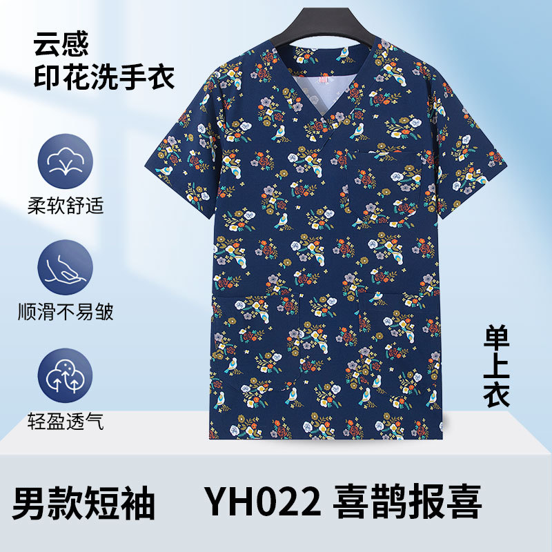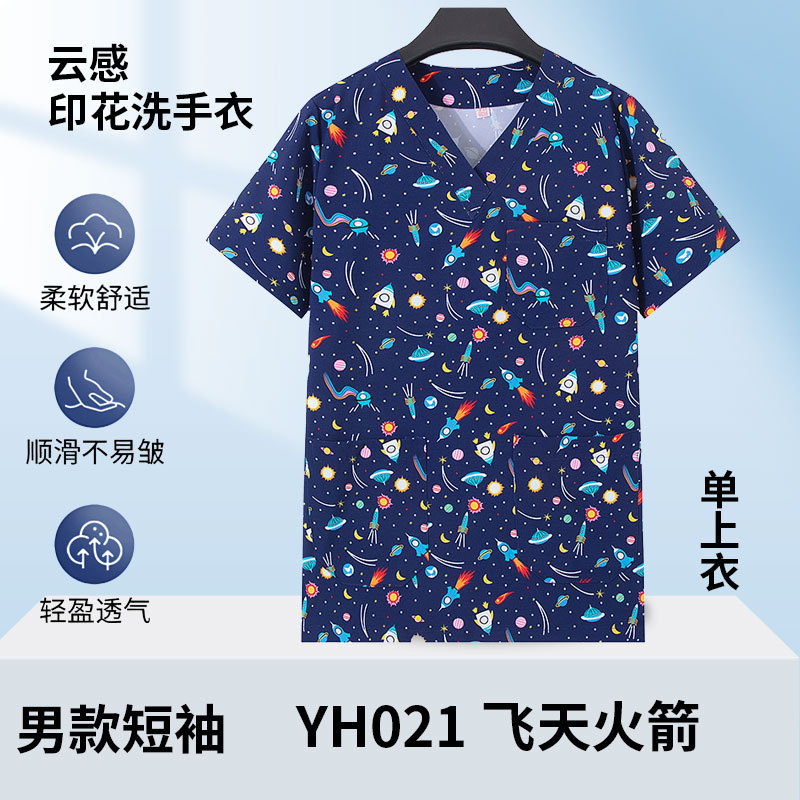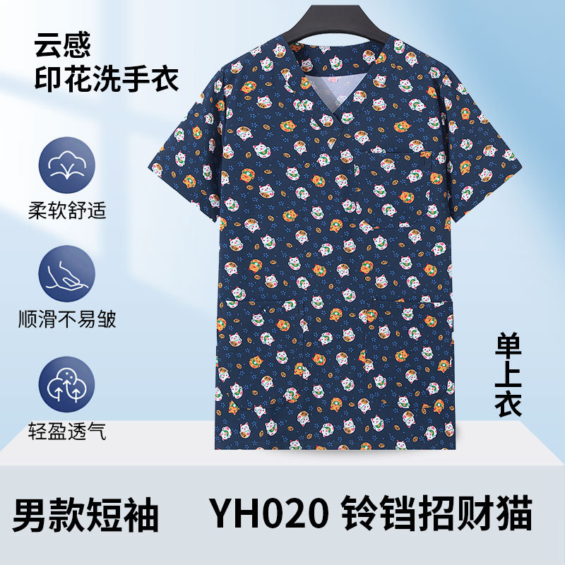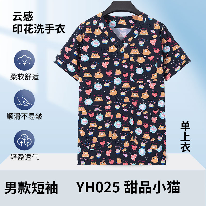 印花洗手衣女短袖上衣医生工作服牙科药店手术衣医护专用护士服男
