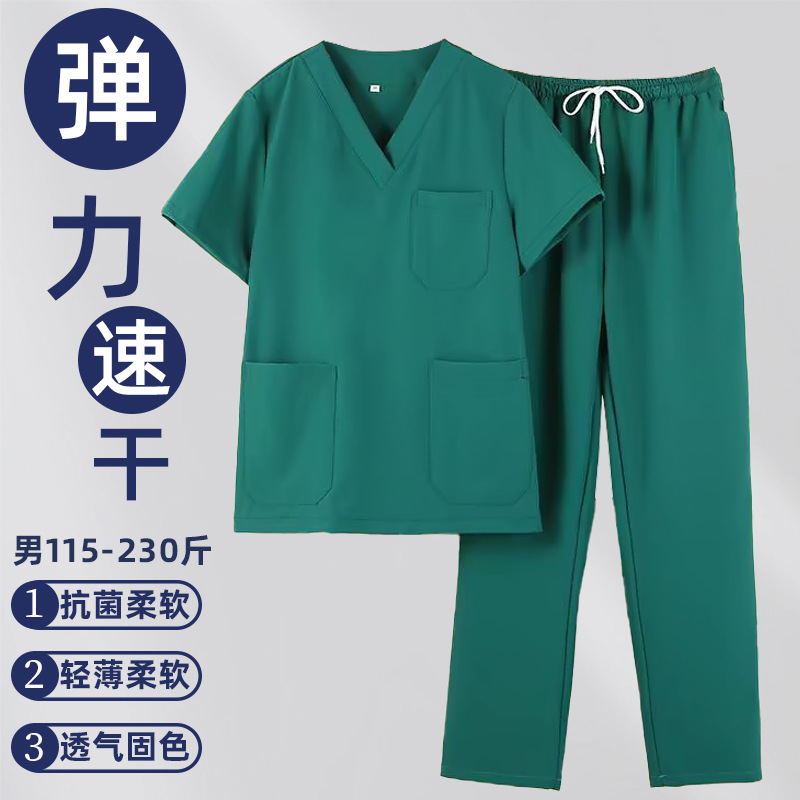 高端弹力速干洗手衣短袖手术室刷手衣牙科口腔宠物医院工作服