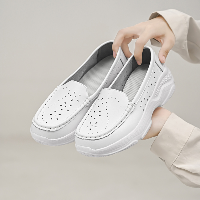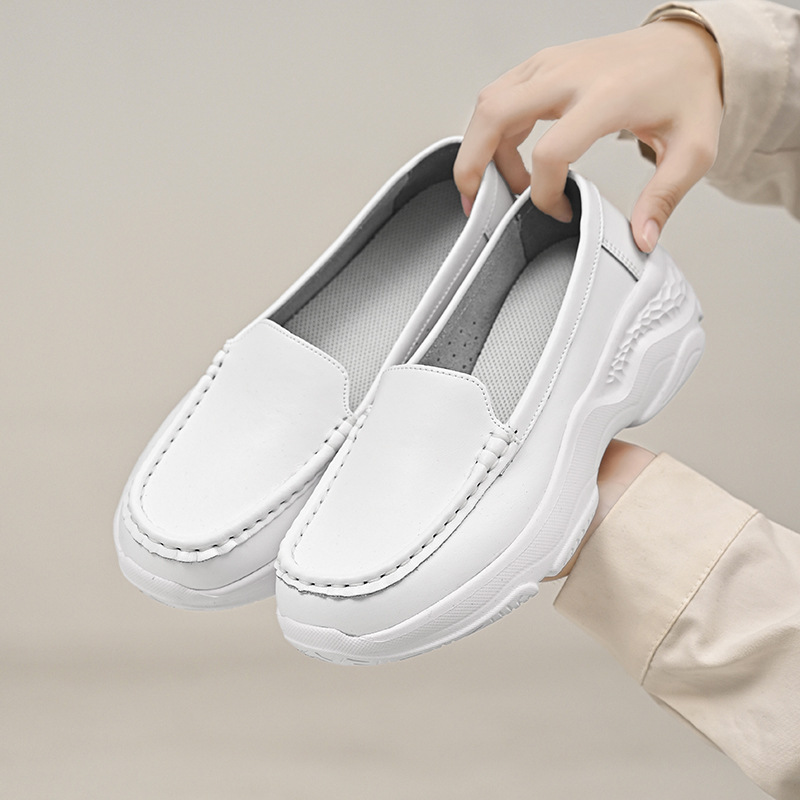 护士鞋女软底透气浅口休闲白色单鞋春夏坡跟厚底不累脚工作鞋