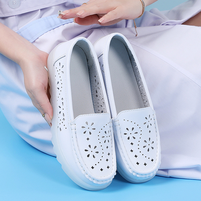 医护春夏舒适平底透气软底不累脚护士鞋女防滑镂空百搭医护小白鞋