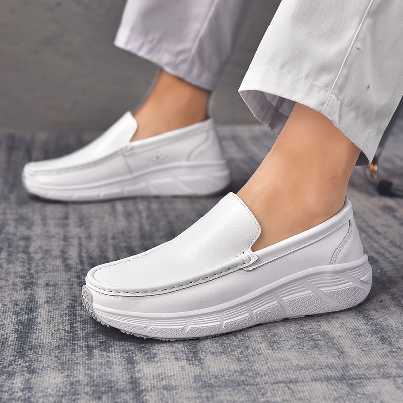 新款真皮软底男女护士鞋舒适百搭透气防滑厚底工作鞋大码休闲鞋