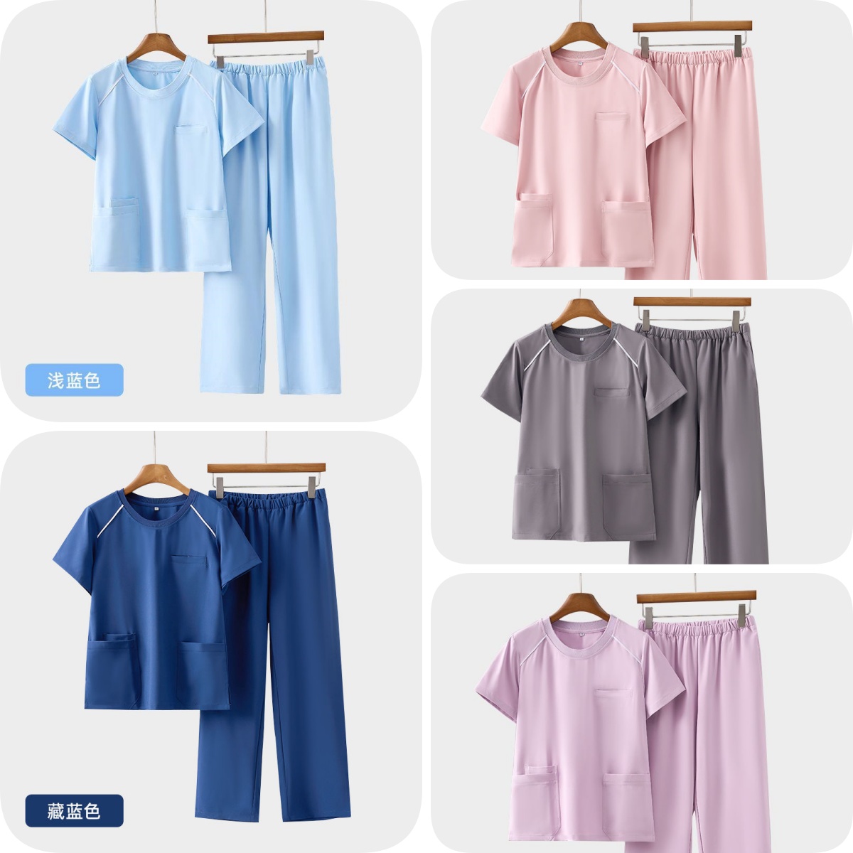 洗手衣男女短袖 v领 分体套装 左肩双暗扣