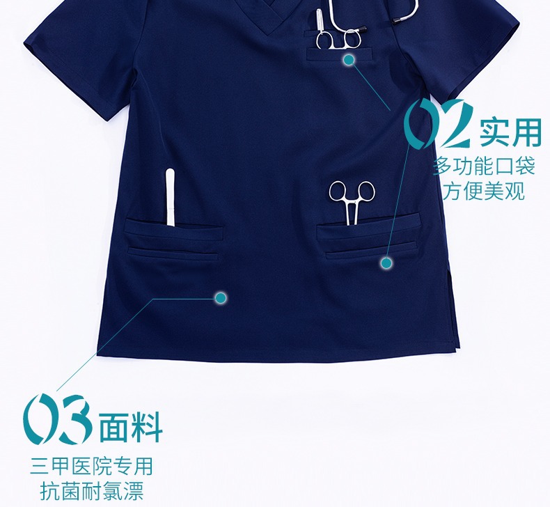 洗手衣男女短袖 v领 分体套装 左肩双暗扣