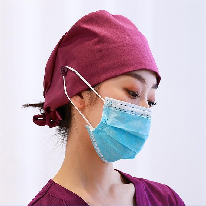 调节扣印花手术帽男女牙科口腔美容院医生护士帽子食品纯棉工作帽