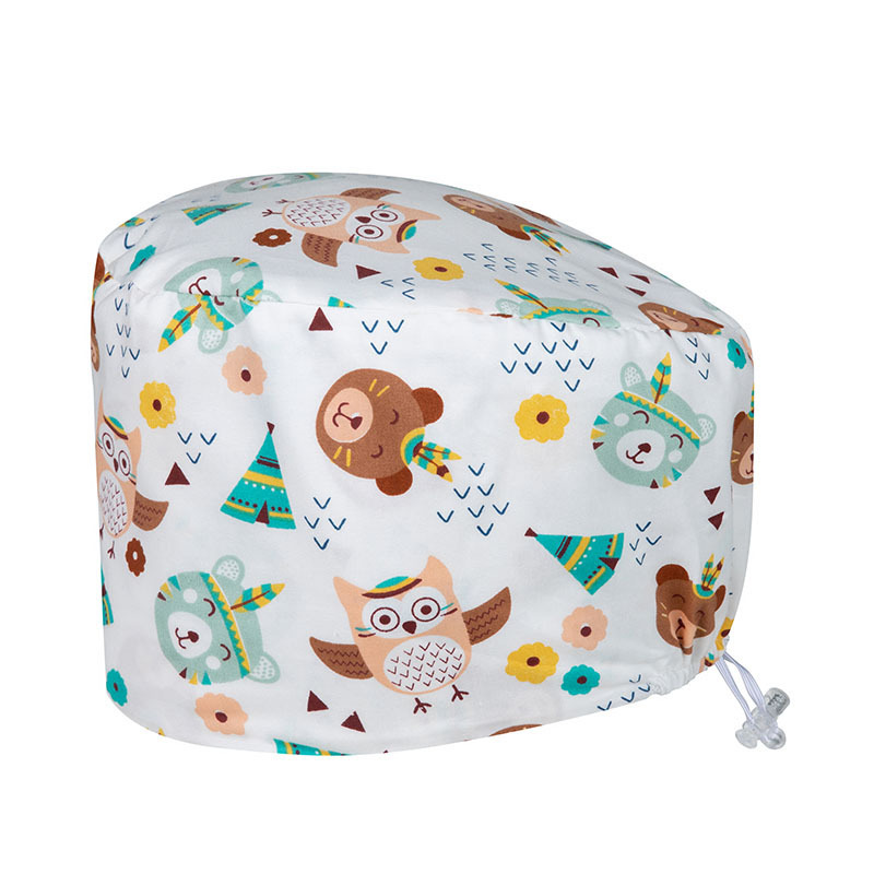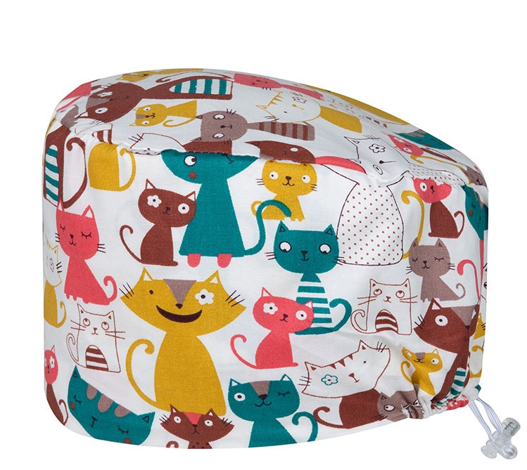 调节扣印花手术帽男女牙科口腔美容院医生护士帽子食品纯棉工作帽