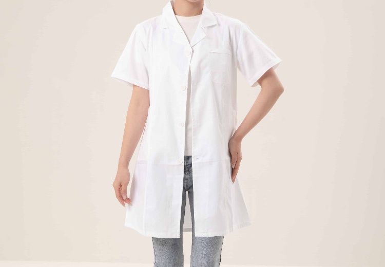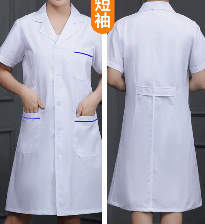 蓝边白大褂短袖医生工作服药厂学生实验服短袖男女